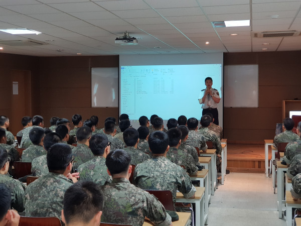 경기 연천경찰서가 지난 6일 육군 제28사단 신병교육대 군 장병 60여명을 대상으로 보행자 교통사고 및 음주운전 근절을 위한 ‘교통안전교육’을 진행했다. 사진은 교통안전교육에 참석한 군 장병들이 교육을 받고 있는 모습. (사진제공=연천경찰서)