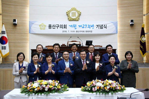 아울러 구의회는 임시회 폐회 후 본회의장에서 '용산구의회 개원 제27주년 기념식'을 개최했다. 기념식은 현직의원과 용산구청장, 국회의원을 비롯한 간부공부원 등이 참석한 가운데, 경과보고와 의장의 기념사, 내·외빈 축사 등의 순서로 진행됐다.