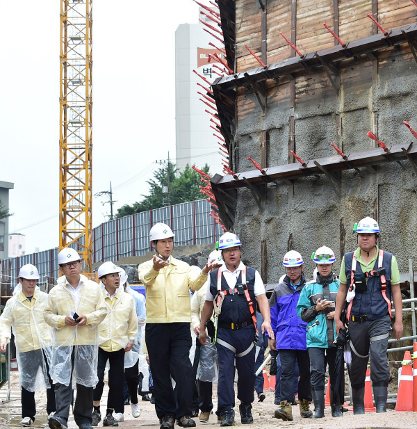 문 구청장은 간부 직원, 공사 관계자들과 함께 흙막이 시설 변형, 인접 도로 침하, 주변 구조물 균열, 배수시설 이상 여부 등을 꼼꼼히 살피고 집중호우에 따른 위험시설물 안전 대책을 논의했다.