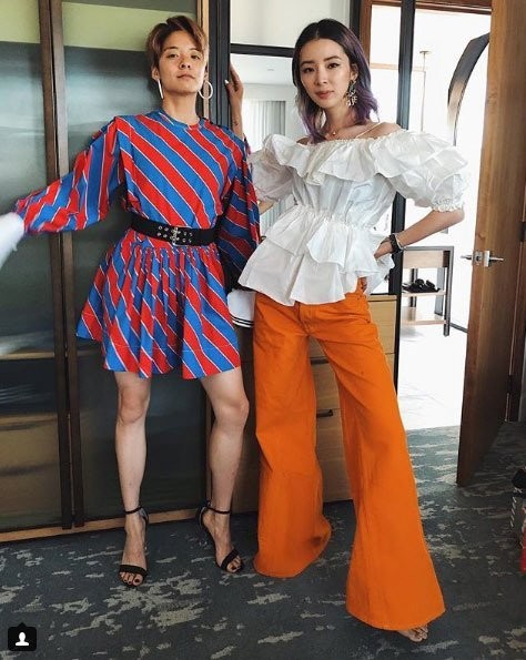 공개된 사진 속에서 엠버는 아이린과 함께 하이 패션 모델 포즈로 카메라 앞에 카리스마 넘치는 모습을 드러냈다. 아이린은 전날 엠버가 입은 드레스를 입은 자신의 모습을 공개한 바 있다.