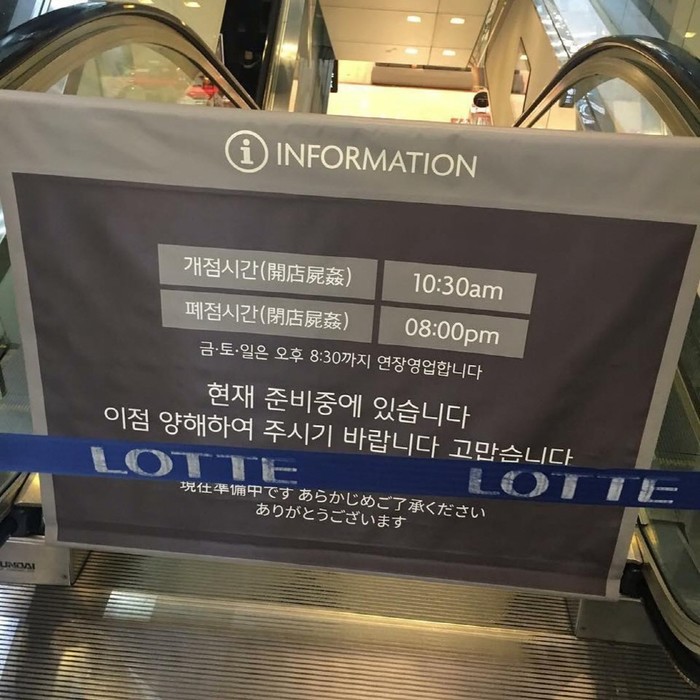 [시민일보=고수현 기자]롯데백화점이 개점·폐점시간의 한자표기를 '時間'이 아닌 '屍姦'으로 오기하면서 국제적 망신살을 자처해 논란이 되고 있다.