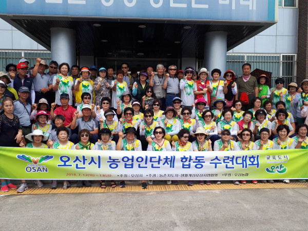 경기 오산시는 지난 12~13일 1박2일간 농촌지도자회와 생활개선회 등의 관계자 150여명이 참석한 가운데 강원 속초시 농협설악수련원에서 ‘농업인단체 합동수련대회’를 개최했다. 사진은 교육종료 후 참가자들이 기념촬영을 하는 모습. (사진제공=오산시청)