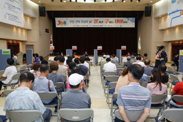 서울 성동구가 16일 오후 2시 구청 대강당에서 중구 및 용산구와 함께 구인·구직 만남의 날 행사인 ‘일구데이’를 개최했다. 사진은 구직을 희망하는 지역주민들이 행사에 참석해 구직 상담을 받고 있는 모습. (사진제공=성동구청)