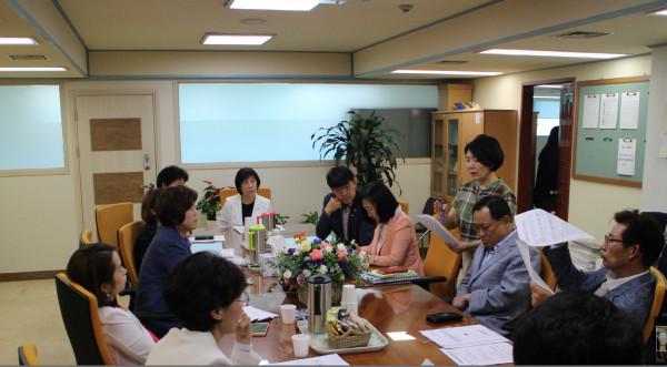 | ▲ 김혜련 서울시의회 보건복지위원장 등 관계자들이 서울시 여성가족정책실 가족담당관의 현황보고를 듣고 있는 모습. (사진제공=서울시의회) | ||