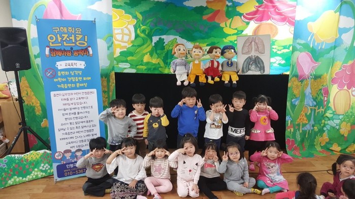 구는 지역내 20여곳의 어린이집을 방문해 ‘흡연의 위험성 및 가족의 금연돕기’를 주제로 아동·청소년의 눈높이에 맞춰 탈인형 및 막대인형을 활용한 인형극을 공연하고 있기도 하다.