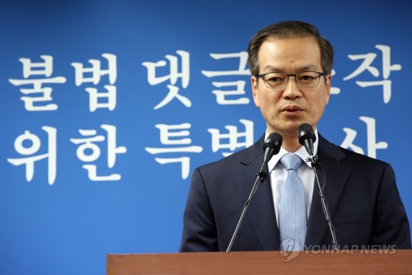 | ▲ 드루킹 댓글조작 의혹을 수사 중인 허익범 특별검사가 20일 오후 서울 서초구 특검 기자실에서 수사 상황 관련 브리핑을 하고 있다.(사진제공=연합뉴스) | ||