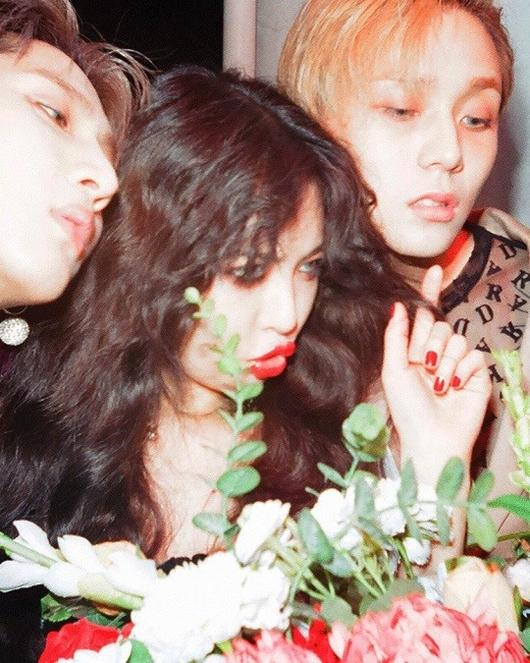 18일 현아는 자신의 인스타그램에 사진 한 장을 게재했다. 사진 속 후이, 현아, 이던은 각기 다른 포즈로 몽환적 분위기를 자아냈다.