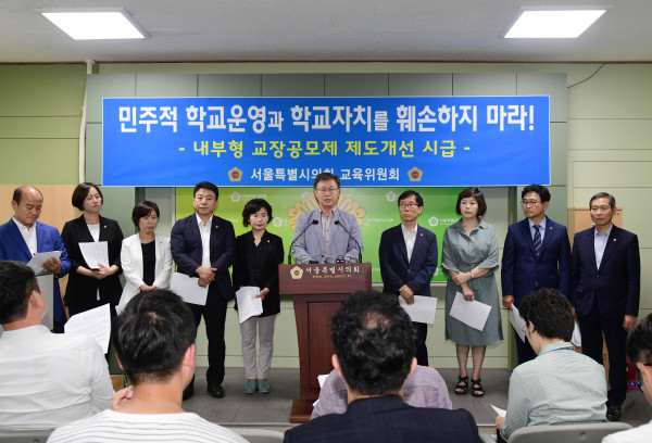 [시민일보=이진원 기자] 서울시의회 교육위원회는 지난 23일 시의회 기자회견장에서 최근 문제가 된 ‘내부형 교장공모 절차’의 문제점을 지적하면서 조속한 제도개선을 촉구했다.