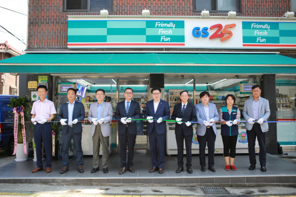 최근 강동구가 GS25 강동암사점에 저소득층 자활 촉진과 일자리 창출을 위한 편의점 ‘내일스토어’의 문을 열고 운영에 들어갔다. 사진은 개소식에 참석한 이정훈 구청장(가운데)이 관계자들과 리본커팅식을 진행하고 있는 모습. (사진제공=강동구청)