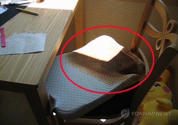 발견 당시 하늘색 커버가 씌워진 라텍스 소재의 베개는 이미 절반가량이 타 갈색으로 변한 상태였으며, 베개 위로는 강한 직사광선이 내리쬐고 있었던 것으로 알려졌다.