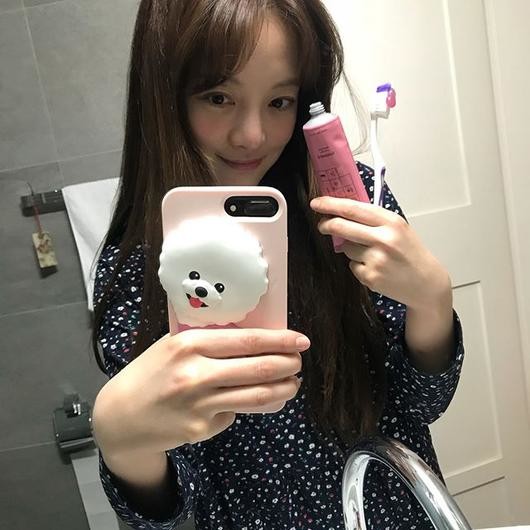 황보라는 자신의 SNS에 사진 한 장을 게재한바 있다. 공개된 사진 속 황보라는 화장실에서 치약을 들고 있다.