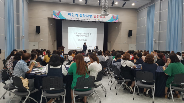 경기 연천군은 지난 26일 인접지역인 동두천시에서 발생한 어린이집 통학버스 안전사고로 학부모의 불안감이 커지고 있는 점을 반영, 어린이집 통학차량 운영 관계자를 대상으로 안전교육을 실시했다. 사진은 안전교육이 진행 중인 모습. (사진제공=연천군청)