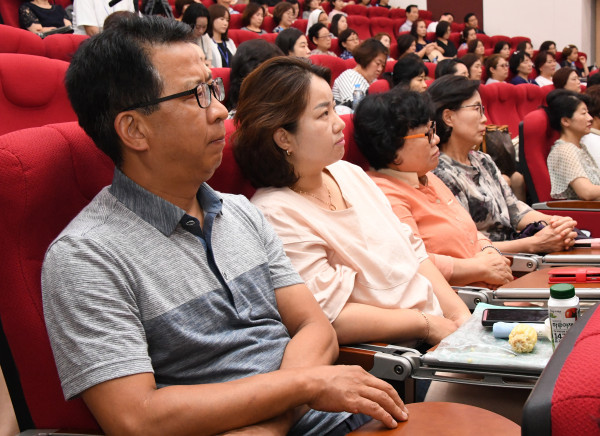 지난 27일 광진구가 최근 잇달아 발생한 어린이집 차량안전 사고와 아동학대로 인한 아동사망 사고에 대한 예방의 일환으로 ‘어린이집 안전운영 및 아동학대 예방교육’을 실시했다. 이날 교육에는 어린이집 원장, 통합차 운전자 등 약 240명이 참여했다. 사진은 참여자들이 강의에 집중하는 모습. (사진제공=광진구청)