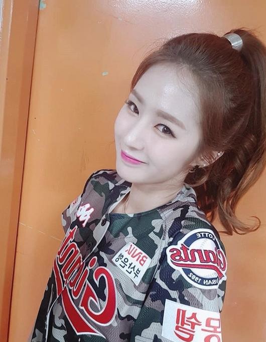 밀리터리 버전 롯데자이언츠 유니폼을 입은 그는 중계시청을 부르는 여신 미모로 남심을 저격했다.
