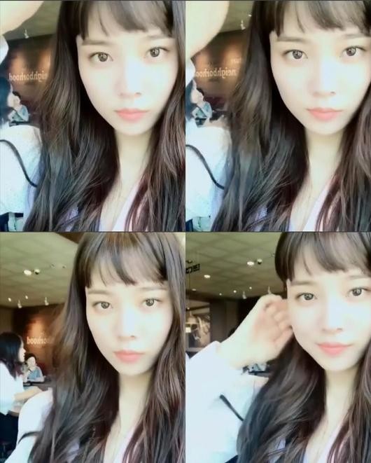 윤소희는 자신의 SNS에 영상을 하나 게재했다. 공개된 사진 속 그는 카메라를 응시하며 머리를 만지고 있다.