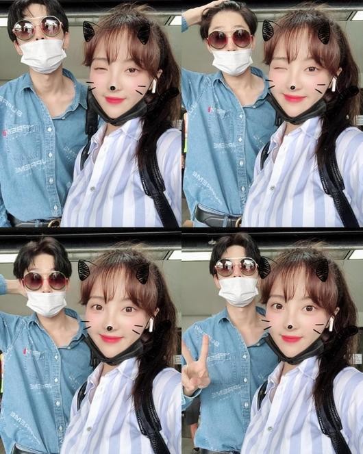 공개된 사진은 권현빈과 정혜성이 함께 찍은 4분할 셀카다. 사진 속 권현빈은 마스크와 선글라스로 얼굴을 가리고 있다.