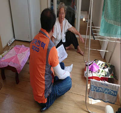 | ▲ 한전 관계자가 이재민에게 전기요금 감면기간 연장을 안내하고 있다. | ||