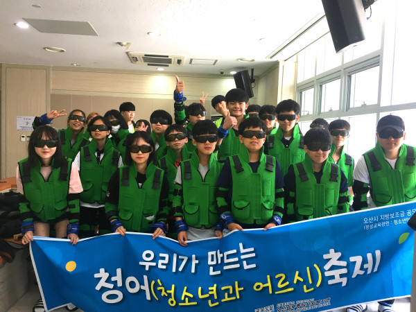 최근 경기 오산남부종합사회복지관이 지역내 중·고등학생 80명과 함께 청소년들이 준비한 ‘어르신 여름축제’란 의미의 ‘청어축제’를 개최했다. 사진은 청어축제에 참여한 중·고등학생들이 현수막을 들고 기념촬영을 하는 모습. (사진제공=오산시청)