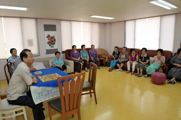 고재학 경기 동두천시 부시장은 7일 생연2동 모랫말 경로당 등 무더위쉼터를 방문해 마을 노인들에게 수박을 건네며 무더위쉼터의 불편사항에 대해 청취했다. 사진은 고 부시장(왼쪽)이 주민들의 건의사항을 청취하고 있는 모습. (사진제공=동두천시청)