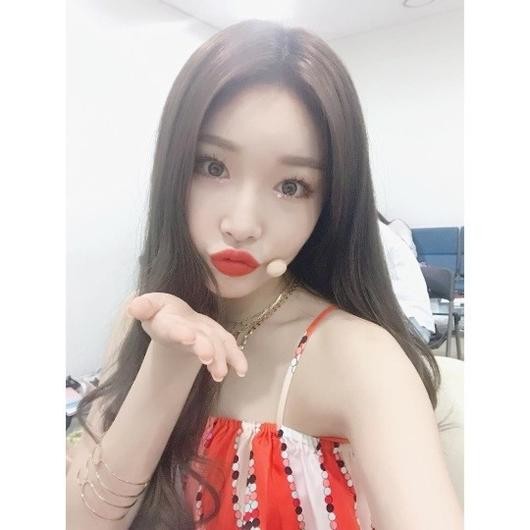 10일 청하는 자신의 인스타그램에 사진 한 장을 게재했다. 청하는 레드 컬러 포인트 스타일링으로 화려한 분위기를 자아냈다.