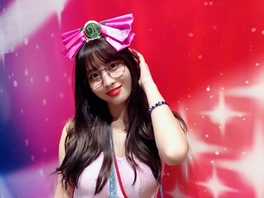 사진 속에는 유니버설 스튜디오에 놀러 간 모모의 모습이 담겼다. 모모는 모자와 안경으로 얼굴을 가린 채 즐거운 시간을 보냈다. 모모의 잡티 하나 없는 피부와 뚜렷한 이목구비가 돋보인다.