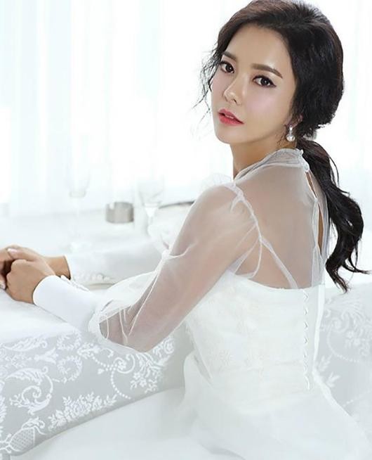 사진에서 최은주는 운동복 대신 화이트 드레스에 망사로 어깨와 등을 드러냈다. 머슬퀸의 강한 모습 대신 청순함과 여성스러움이 눈길을 사로잡는다.