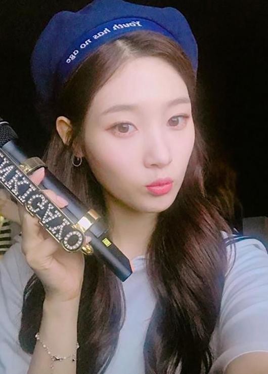 최근 정채연은 자신의 SNS에 "저번주 #인기가요 때 못올려주신 사진 #제가대신올리겟슙니다"라는 글과 함께 한 장의 사진을 게재했다. 정채연은 인기가요 마이크를 들고 카메라를 응시하고 있다.