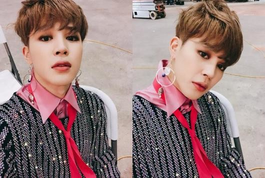 공개된 사진 속에는 촬영 현장 속 셀카를 찍고 있는 지민의 모습이 담겨있다. 특히 그의 치명적인 외모가 누리꾼들의 이목을 사로잡았다.