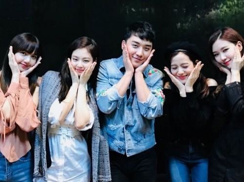 사진 속 승리는 블랙핑크 멤버(로사, 제니, 지수, 로제)들과 꽃받침 포즈를 하며 밝은 미소를 짓고 있다. 특히 이들은 다정한 포즈를 취하며 소속새 선후밴의 친분을 과시해 눈길을 끈다.
