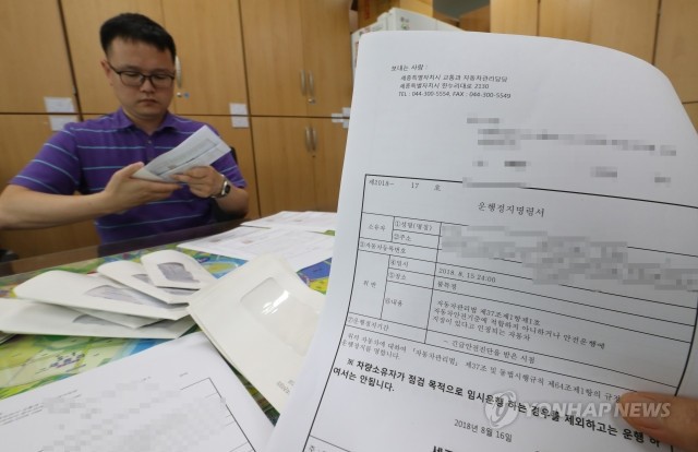 정부가 부품 결함으로 리콜에 들어간 BMW 일부 차량의 운행중지를 결정한 가운데, 16일 오후 세종시청 직원이 리콜대상 차량 가운데 안전점검을 받지 않은 BMW 차량에 대한 운행중지 명령서 발송 준비를 하고 있다.