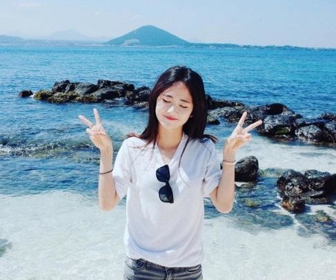 그녀는 과거 자신의 SNS에 한 장의 사진을 게재했다. 게재한 사진 속에서 그녀는 우도 서빈백사의 푸른 해변을 배경으로 브이 포즈를 취하고 있는 귀여운 모습이다.
