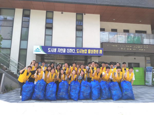 인천 미추홀구 용현1·4동 행정복지센터는 지역내 대학생과 함께 인하 문화의 거리 일대에 대한 환경정비 활동을 전개했다. 행사에는 인천지역 4개 대학교 ASEZ 동아리 회원 및 용현1·4동 행정복지센터 직원 등 30여명이 참여했다. 사진은 참여자들이 기념촬영을 하는 모습. (사진제공=미추홀구청)