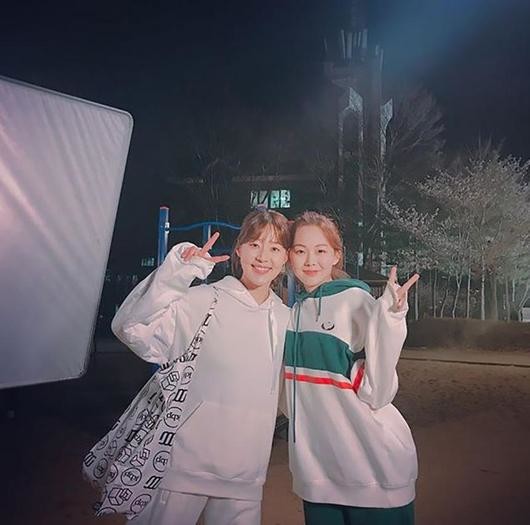 공개된 사진 속 한지혜는 금새록과 함께 브이를 하고 있다. 드라마에선 완벽한 언니와 철없는 동생이지만 드라마 밖에서는 다정함이 느껴진다.