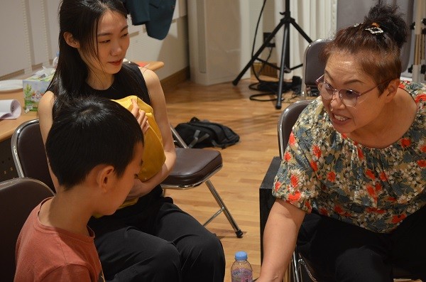 | ▲ 강진 극단 청자 단원들의 '곰스크로 가는 기차' 공연 연습(사진) | ||