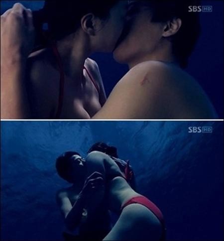 수애는 과거 SBS 드라마 '천일의 약속'에서 농도 짙은 키스신을 선보였다. 공개된 영상 속 수애는 빨간색 비키니를 입고 물속에서 상대 배우 김래원과 키스를 하고 있다.