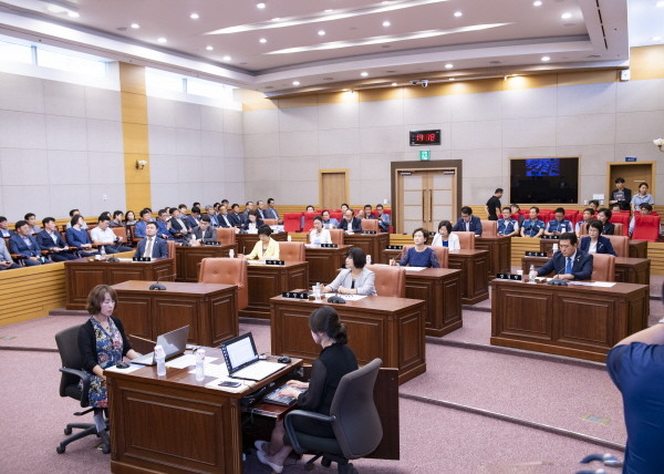 고양석 의장은 개회사를 통해 "우리구 의회는 하반기에 있을 행정사무감사와 결산승인, 예산안 심사 등에 대비하고자 지난 16~17일 의원 워크숍을 개최했다"며 "의원 간 분임 토론회를 통해 8대 의회의 발전적인 운영방향과 다양한 정책 현안 및 입법의제 발굴 방안 등을 심도있게 논의했다. 이러한 활동을 시작으로 앞으로 의정활동에 필요한 전문 역량을 강화하기 위한 노력을 계속해 나갈 것"이라고 말했다.