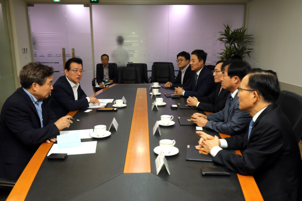 21일 서울 강남구가 본청 전부서와 동주민센터의 3년간 예산·회계·재무에 관한 외부 회계법인 감사를 위해 대주회계법인 소속 공인회계사 5명을 구정 감사 관련 전문감사위원으로 위촉했다. 사진은 정순균 구청장이 전문감사위원들과 구정 전반 감사에 대해 논의를 하고 있는 모습. (사진제공=강남구청)