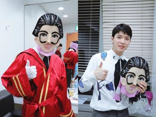 소속사를 통해 공개된 남우현은 살바도르 달리 가면을 쓰고 대기실에 있는 모습과 함께 가면을 들고 엄지를 세워 올린 모습이 눈길을 끈다.