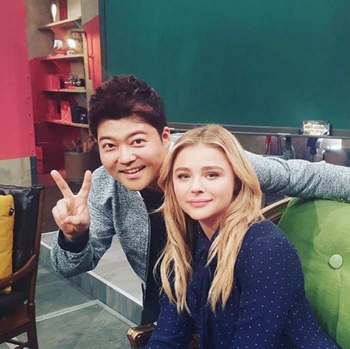 과거 전현무는 자신의 SNS에 "어젯밤 문제적 남자 세트장♡ 얼굴이 아니라 머리가 예쁜 그녀 클로이 모레츠^^ 대표적인 친한파 개념스타 #뇌섹남#문제적남자#전현무#클로이모레츠#김치싸대기#개념할리우드스타"라는 글과 함께 사진을 게재했다.