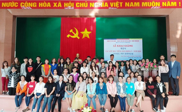 | ▲ 퀴논 세종학당 수강생들이 개강식 후 기념촬영을 하고 있다. (사진제공=용산구청) | ||