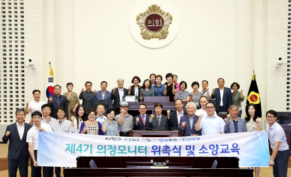 새로 위촉된 제4기 의정모니터는 올해부터 오는 2020년까지 2년간 활동할 예정이며, 지역현안 및 제도개선 사항, 주민 생활 불편사항의 해소 방안을 제안하는 역할을 수행한다.