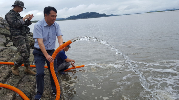 김포시, 누산포구에 황복 치어 30만마리 방류