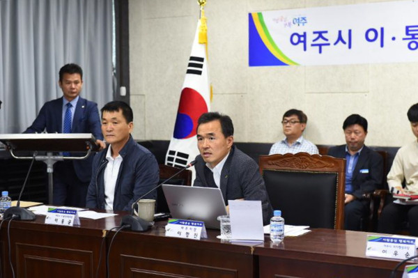 경기 여주시는 27일 이항진 시장 주재로 시청 상황실에서 각 읍·면·동 이·통장들이 참석한 가운데 ‘제6회 여주시민의 날 행사’와 ‘추석 대비 종합대책 상황반 운영’ 등을 내용으로 하는 ‘이·통장연합회 정기회의’를 개최했다. 사진은 이 시장이 발언하고 있는 모습. (사진제공=여주시청)