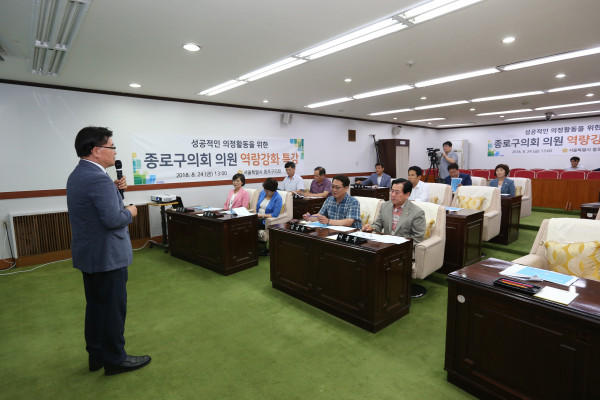 유 의장은 “오늘 강사로 오신 안재홍 전 의원님은 종로구 발전을 위해 열정적으로 활동해 오신 훌륭한 선배의원님으로 우리 종로구의회의 자랑이다. 16년 동안의 의정활동 경험을 압축해 생동감 있게 전달해 실속 있는 교육이 된 것으로 생각한다”며 감사 인사를 전했다.
