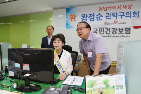 [시민일보=고수현 기자] 왕정순 서울 관악구의장이 국민건강보험공단 관악지사 일일명예지사장으로 위촉돼 관련 업무를 체험하며, 국민건강보험 업무에 대한 현장의 목소리를 경청하는 시간을 보냈다.