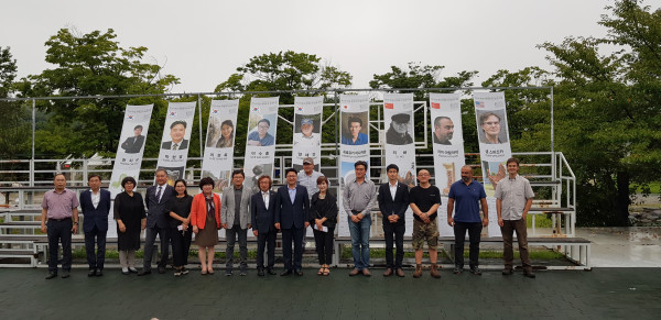 경기 이천시 소재 설봉공원에서 ‘꿈을 조각하다’란 주제로 열린 ‘제21회 이천국제조각심포지엄’이 지난 28일 성황리에 마무리됐다. 사진은 이번 심포지엄에 참여한 국내·외 작가와 엄태준 시장이 행사 종료를 기념해 기념촬영을 하는 모습. (사진제공=이천시청)