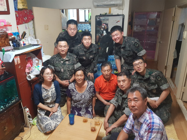 경기 양주시 장흥면 석현리에 주둔한 육군 제72보병사단 예하 516포병대대는 지난 28일 부대 인근 저소득가정을 방문해 생필품과 학용품을 전달하며 이웃사랑을 실천했다. 사진은 관계자들이 기념촬영을 하는 모습. (사진제공=양주시청)
