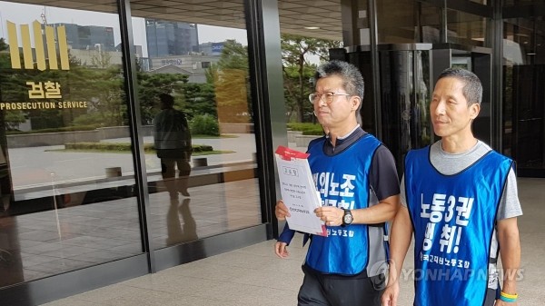 | ▲ 전교조 관계자가 30일 고소장을 들고 서울중앙지검으로 들어서고 있다.(사진제공=연합뉴스) | ||