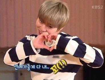 특히 박지훈은 트레이드마크인 '내 마음의 저장' 애교를 선보인 뒤 2018년 버전 새로운 애교를 공개했다. 그는 "'연예가중계' 다 내~꼬"라며 손하트 포즈를 취했다.