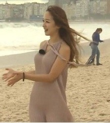 다른 사진은 방송 화면을 캡쳐한 것으로 누드톤 밀착 원피스 차림으로 브라질 해변을 거닐고 있는 모습이다. 역시 빼어난 미모와 볼륨 몸매가 보는 이들의 시선을 사로잡는다.